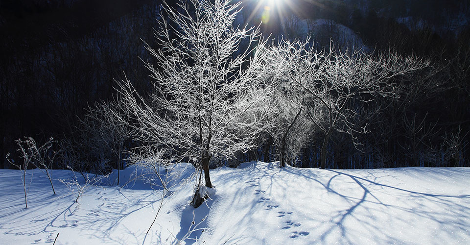 冬の檜枝岐は一面が銀世界!当館の周辺やスキー場では、スノーシューを楽しむことができます。