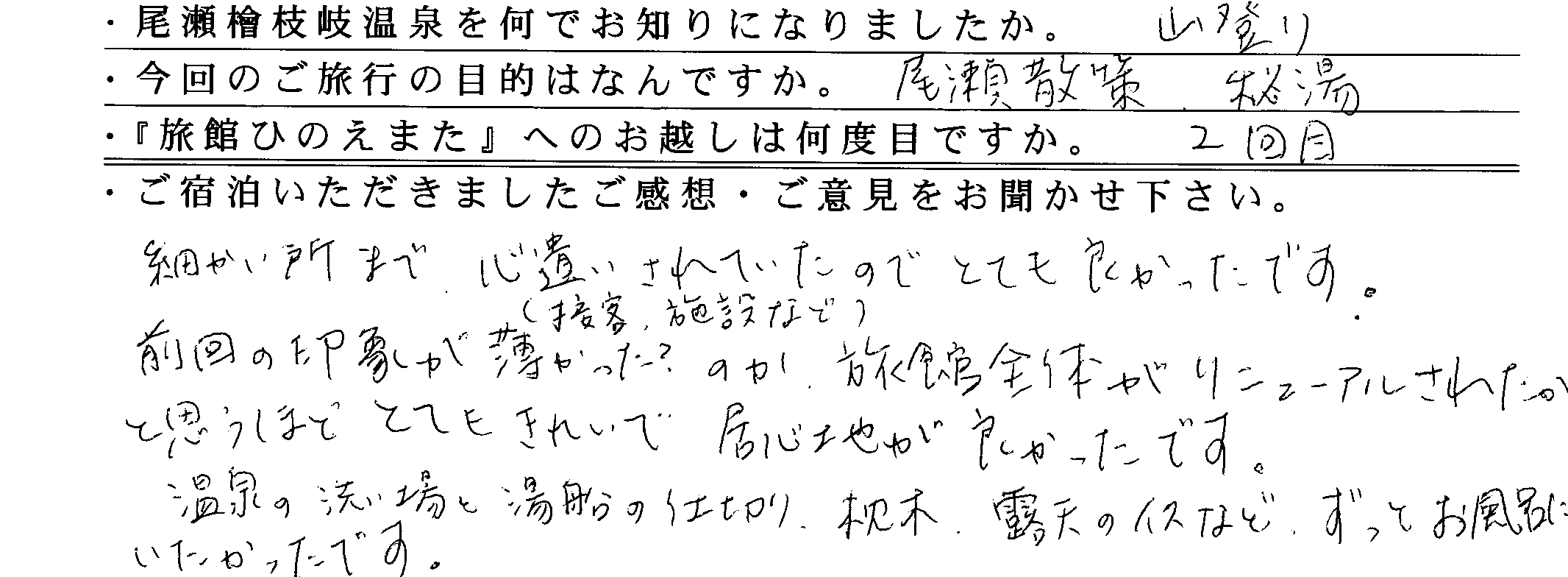 兵庫県 I様 2名ご宿泊 2024年6月1日