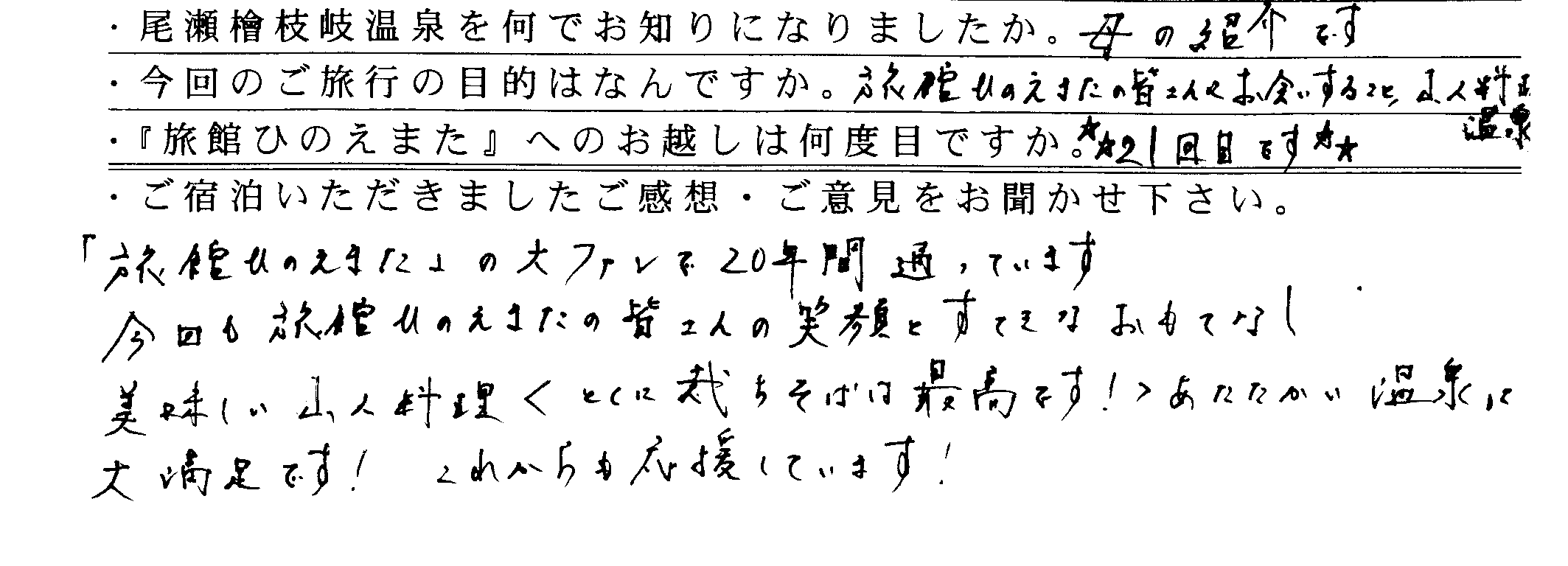 埼玉県 M様 2名ご宿泊 2025年1月18日