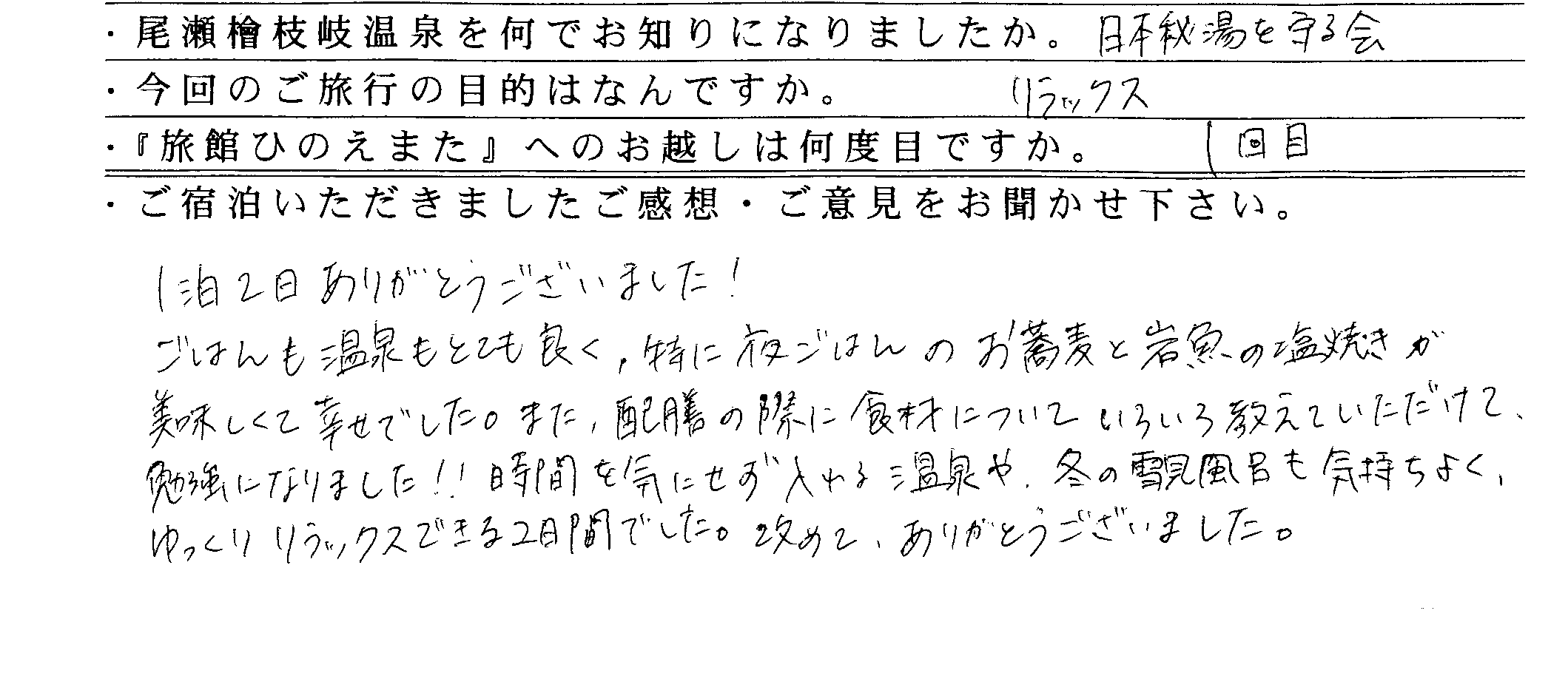 埼玉県 K様 2名ご宿泊 202...
