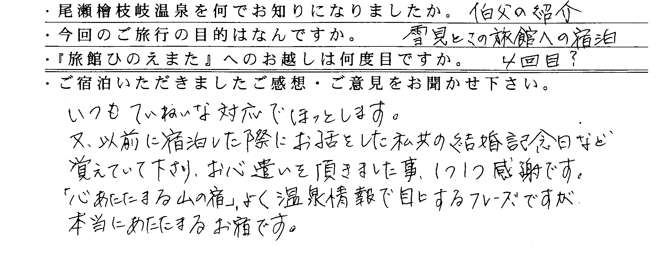 群馬県 K様 1名ご宿泊 202...