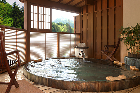 檜の木の香りと大自然の風を肌で感じながらやわらかいお湯に浸かる、最高の贅沢をお楽しみください。