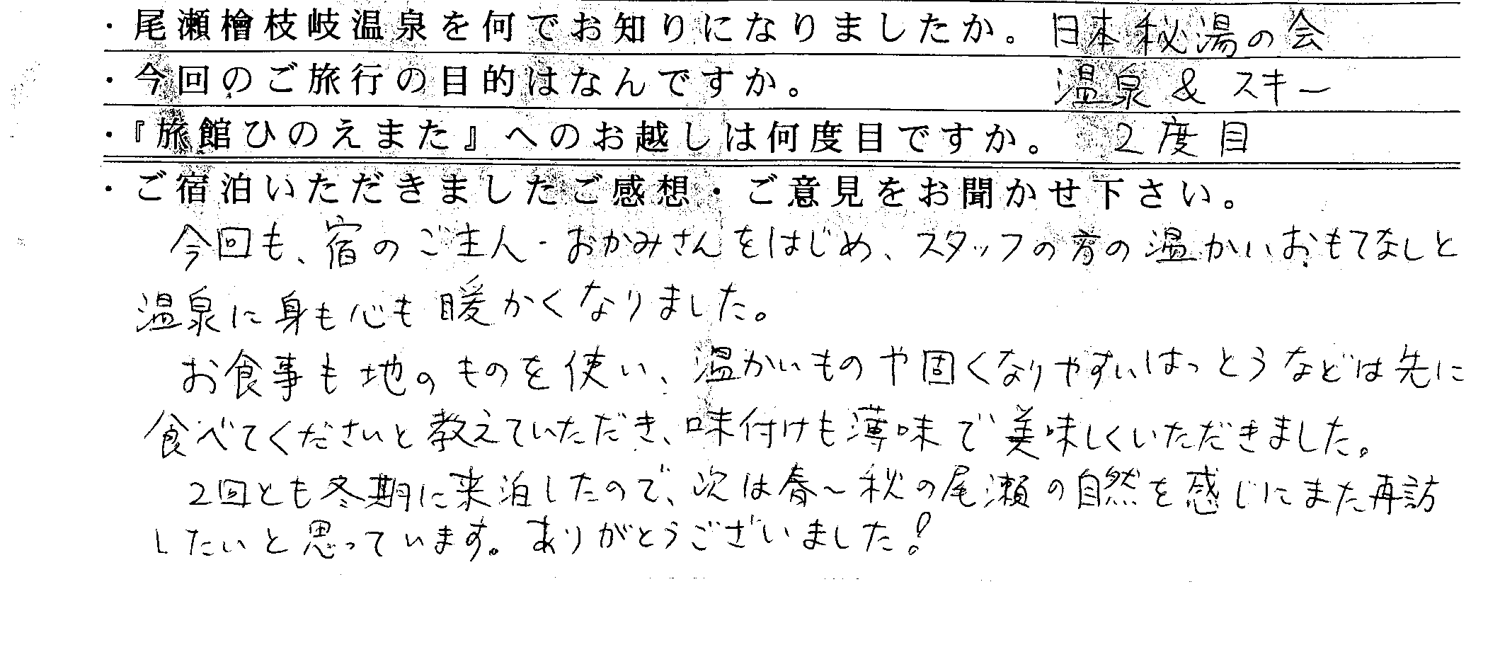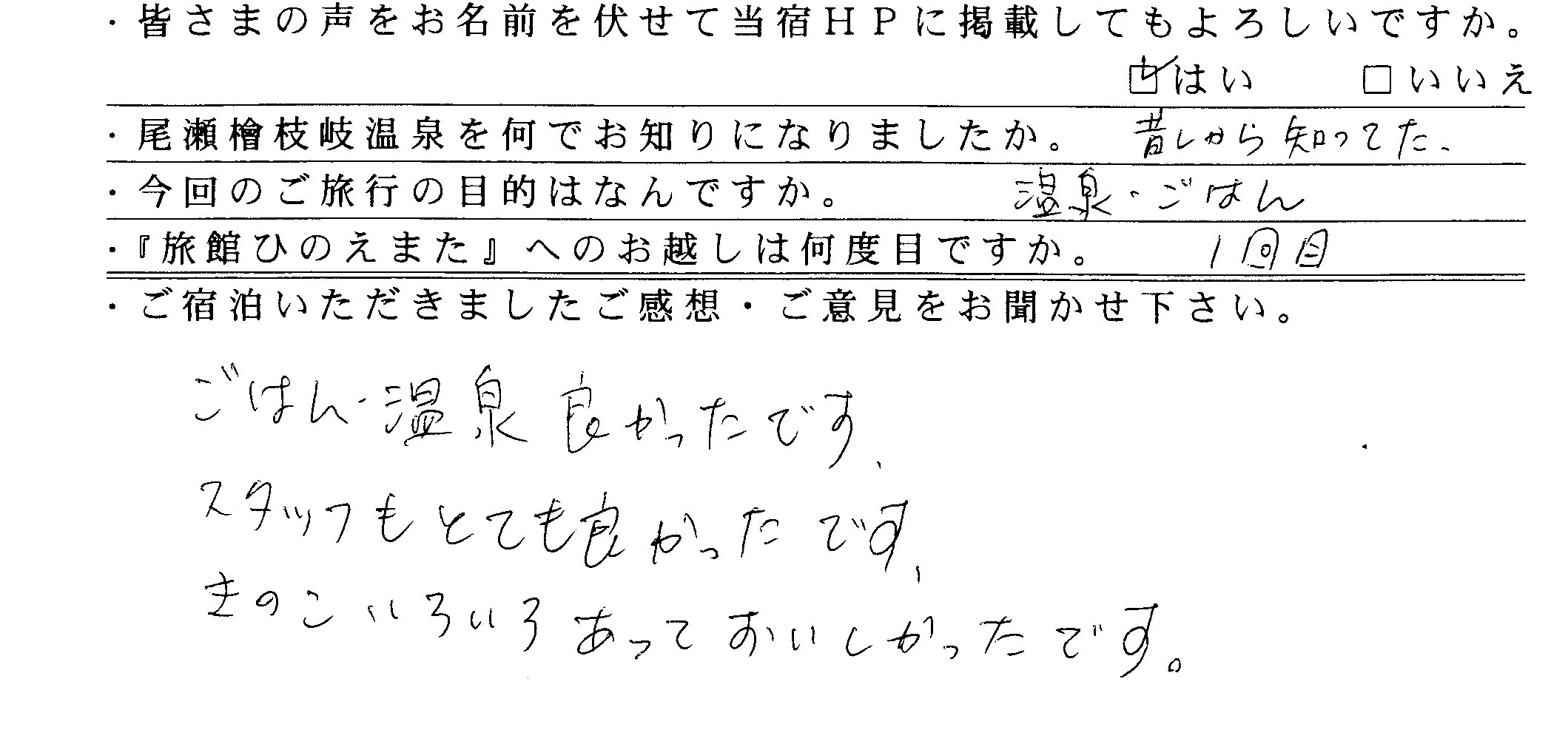 当館にいただきましたお客様の声を掲載いたします。アンケート画像をクリックすると、詳細をご覧いただけます。