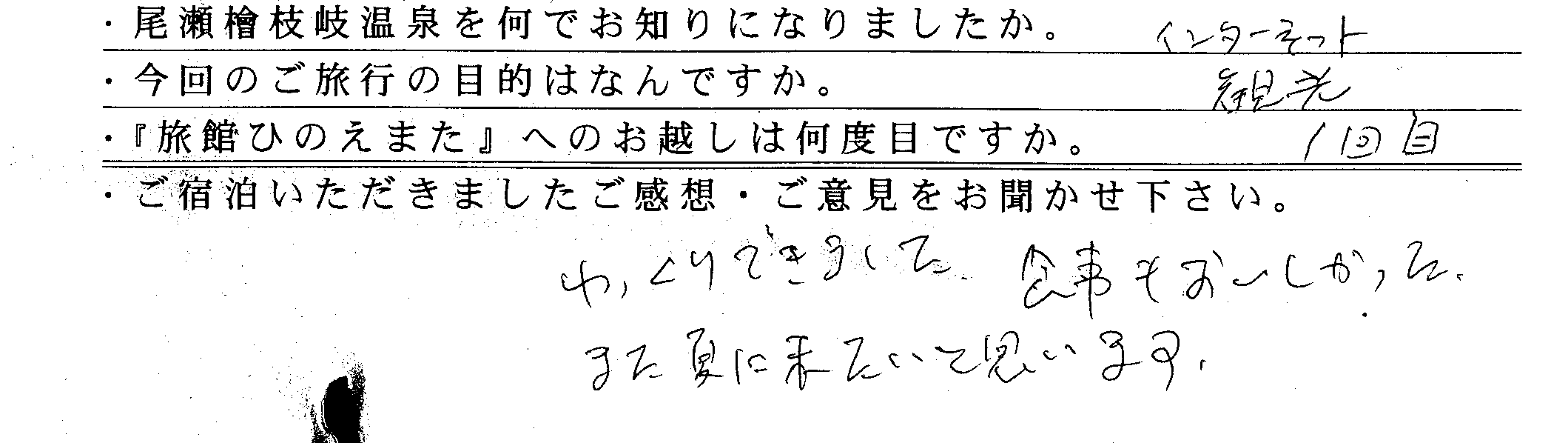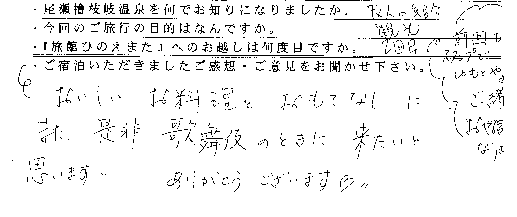 当館にいただきましたお客様の声を掲載いたします。