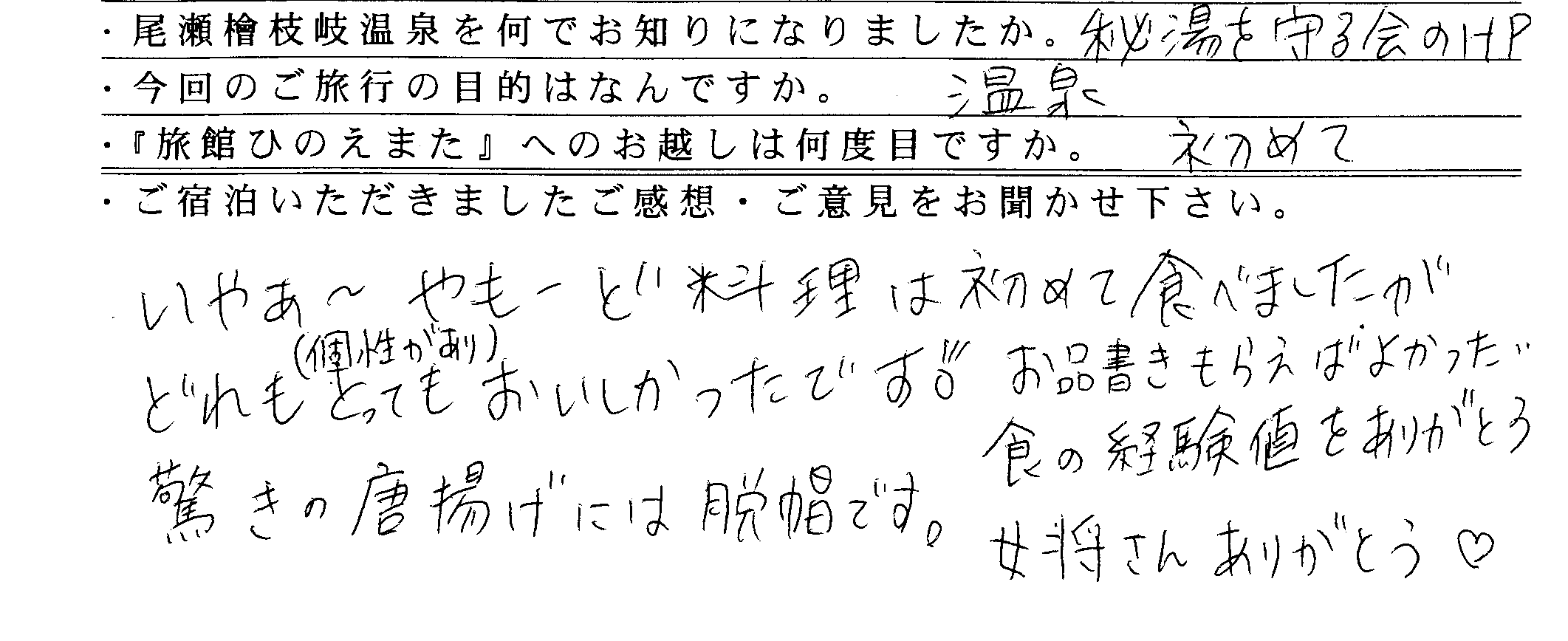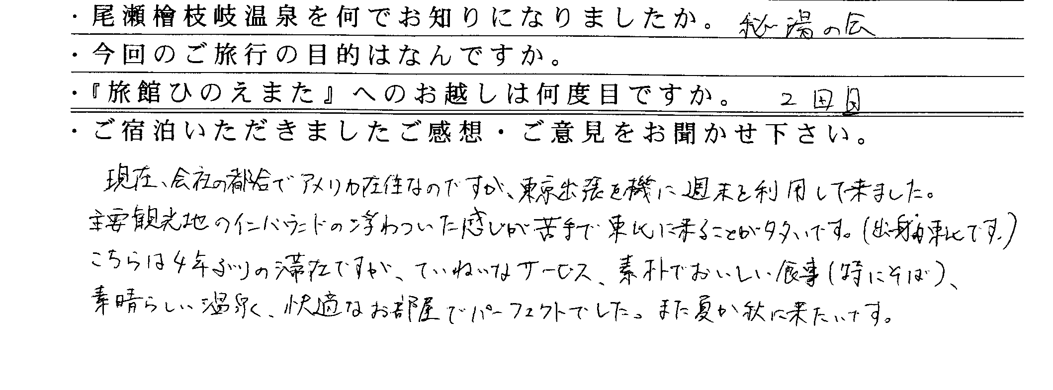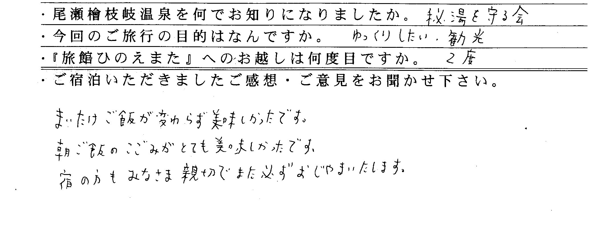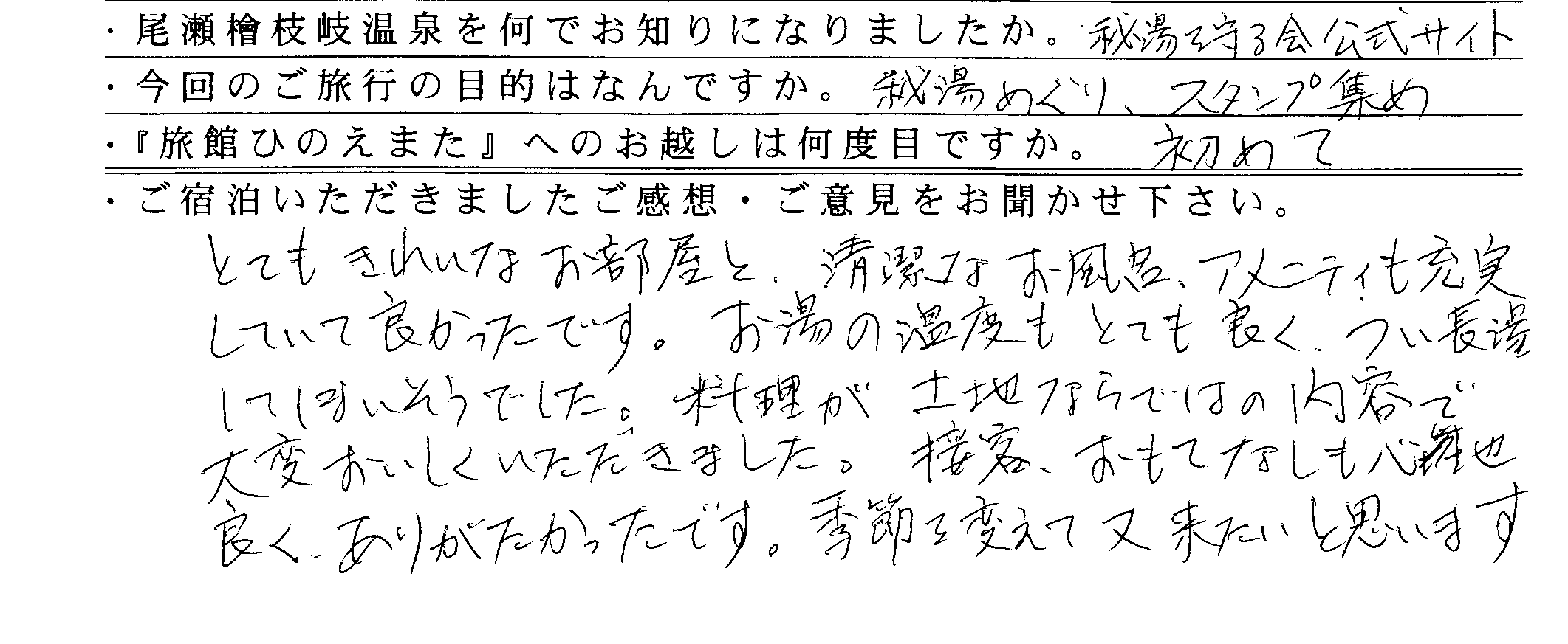 当館にいただきましたお客様の声を掲載いたします。アンケート画像をクリックすると、詳細をご覧いただけます。